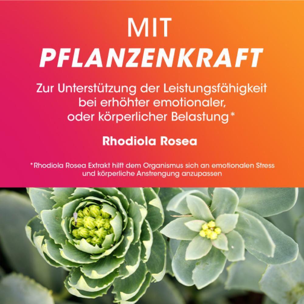 • Der Pflanzenextrakt Rhodiola Rosea begleitet langanhaltend